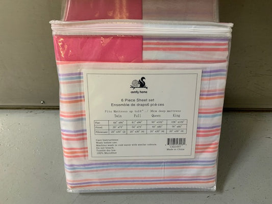 TWIN (SINGLE) SIZE- (COMFY HOME PINK STRIPES)- 4 PC. SHEET SET