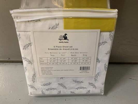 TWIN (SINGLE) SIZE- (COMFY HOME WHITE PRINT)- 4 PC. SHEET SET