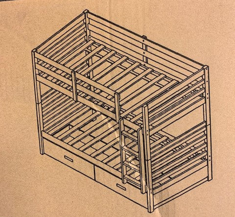 TWIN/ TWIN- (2500 GREY)- WOOD BUNK BED- WITH SLATS