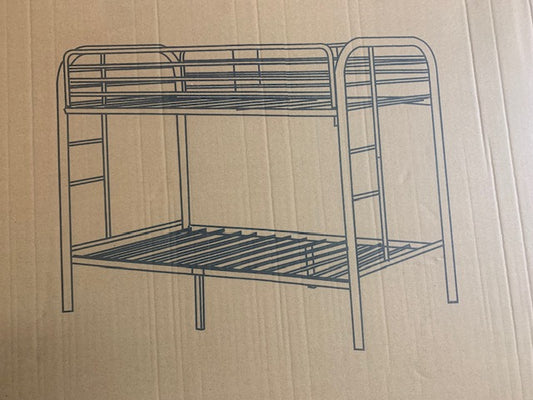 TWIN/ TWIN- (2810 GREY)- METAL BUNK BED- WITH SLATTED PLATFORM