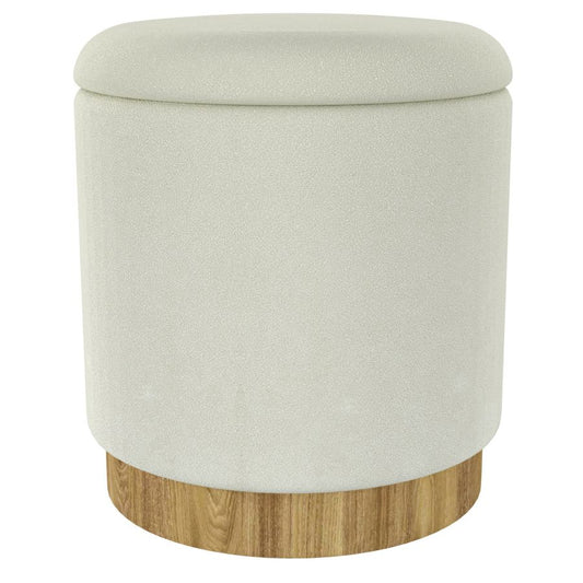 (ALYA WHITE)- 15" ROUND FABRIC STORAGE OTTOMAN