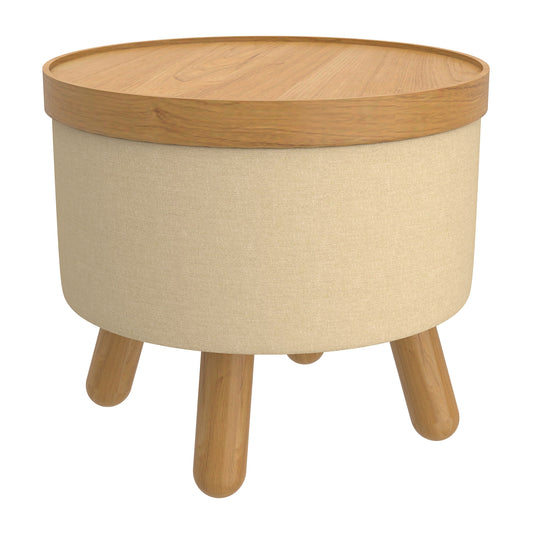 (BETSY BEIGE AND NATURAL)- ROUND- FABRIC STORAGE OTTOMAN