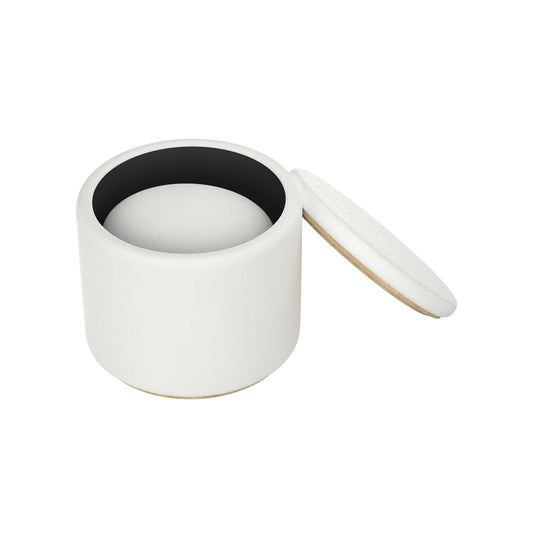 (CASTOR CREAM)- 15.75" ROUND BOUCLE FABRIC STORAGE OTTOMAN