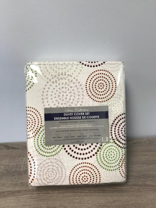 QUEEN SIZE- (SWISS COLLECTION- WHITE PRINT)- 3 PC.- DUVET COVER SET