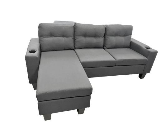 (6818 GREY)- 73" LONG- REVERSIBLE- 3 SEATER FABRIC SECTIONAL SOFA