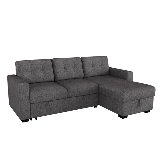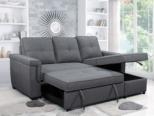 (9040 GREY)- FABRIC- REVERSIBLE- SECTIONAL SOFA- WITH PULL OUT BED