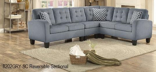(8202 GREY)- FABRIC REVERSIBLE SECTIONAL SOFA- TEXT OR WHATSAPP 416 319 8851 FOR STOCK AVAILABILITY BEFORE PAYING