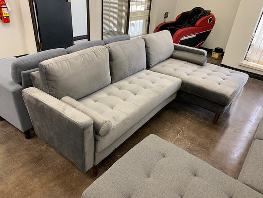 (9122 GREY RHF)- VELVET FABRIC SECTIONAL SOFA