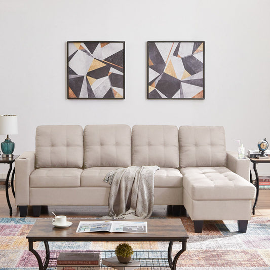 (2022 BEIGE)- REVERSIBLE- LEATHER 4 SEATER SECTIONAL SOFA