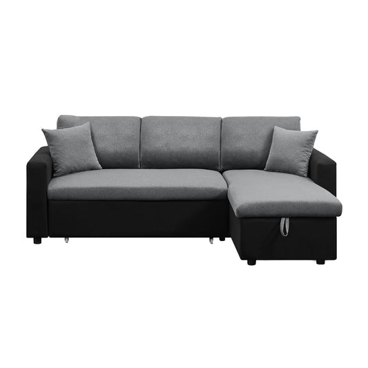 (1642 TWO TONE GREY/ BLACK)- 88" LONG- REVERSIBLE- FABRIC SECTIONAL SOFA WITH PULL OUT BED