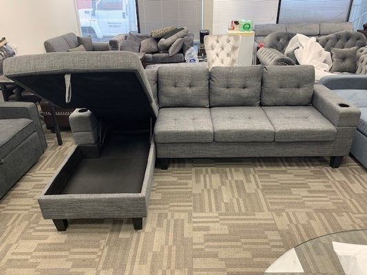 (DF 1839 GREY LHF)- FABRIC SECTIONAL SOFA- WITH STORAGE