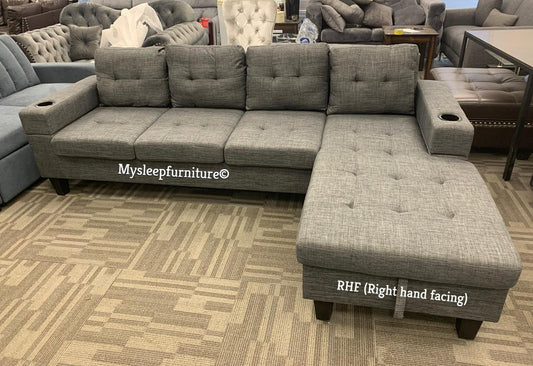 (DIAMOND GREY FABRIC)- REVERSIBLE SECTIONAL SOFA