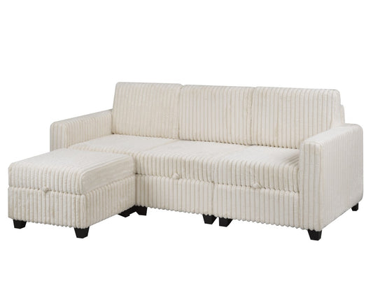 (240311 BEIGE)- REVERSIBLE- CORDUROY FABRIC MODULAR SECTIONAL SOFA