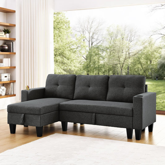 (JOHNNY BLACK)- REVERSIBLE- FABRIC SECTIONAL SOFA- WITH STORAGE