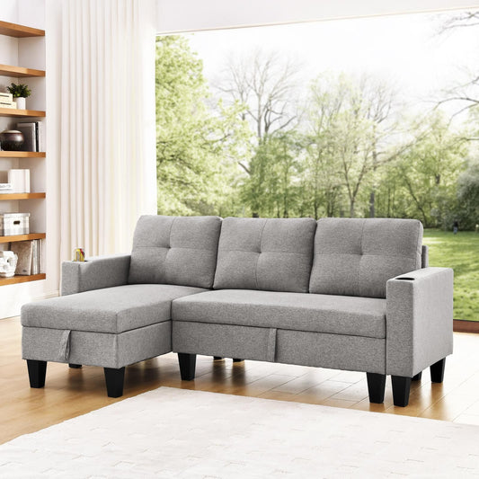 (JOHNNY GREY)- REVERSIBLE- FABRIC SECTIONAL SOFA- WITH STORAGE