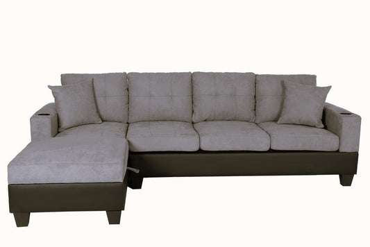 (QUEENS GREY TWO TONE)- REVERSIBLE- FABRIC SECTIONAL SOFA- WITH STORAGE