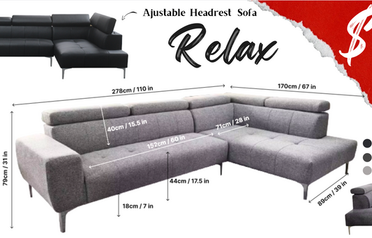 (RELAX DARK GREY LHF)- FABRIC SECTIONAL SOFA- WITH HEADRESTS