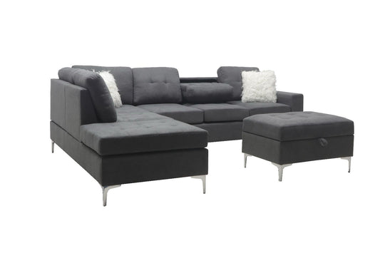(AM 1311 GREY RHF)- FABRIC SECTIONAL SOFA- WITH STORAGE OTTOMAN