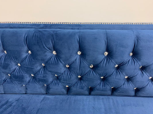 (4402C BLUE- 1)- VELVET FABRIC- CRYSTAL TUFTED- CANADIAN MADE- SOFA- DELIVERY AFTER 3 WEEKS