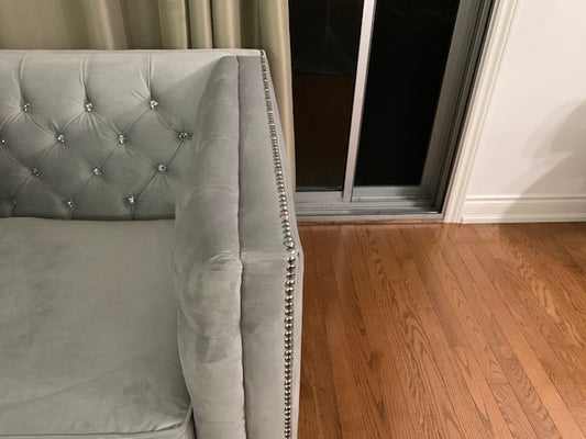 (4402C GREY- 1)- VELVET FABRIC- CRYSTAL TUFTED- CANADIAN MADE- SOFA- (DELIVERY AFTER 3 WEEKS)