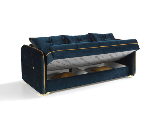 (TORINO BLUISH GREEN SLC)- VELVET FABRIC SOFA + LOVESEAT + CHAIR- WITH STORAGE- WITH BED