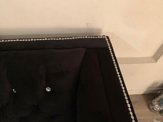 (4402C BLACK SLC)- VELVET FABRIC- CRYSTAL TUFTED- CANADIAN MADE- SOFA + LOVESEAT + CHAIR- DELIVERY AFTER 3 WEEKS