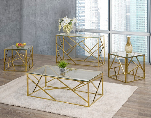 (2340 GOLD- 3)- GLASS COFFEE TABLE- WITH 2 SIDE TABLES