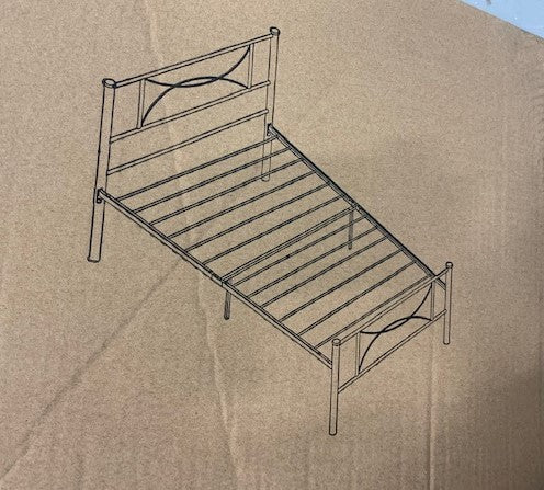 TWIN (SINGLE) SIZE- (102 BLACK)- METAL BED FRAME- WITH SLATS