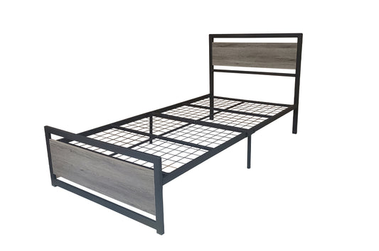 TWIN (SINGLE) SIZE- (UPTOWN GREY)- FABRIC BED FRAME- WITH SLATS