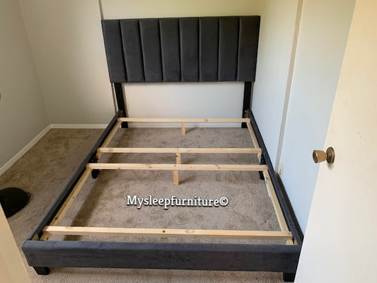 QUEEN SIZE- (2177 GREY FABRIC)- BED FRAME IN A BOX- WITH SLATS