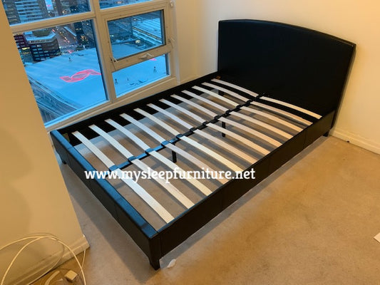 DOUBLE (FULL) SIZE- (JAY BLACK)- LEATHER BED FRAME- WITH SLATS