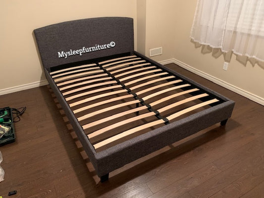 QUEEN SIZE- (2358 GREY)- FABRIC BED FRAME- WITH SLATS