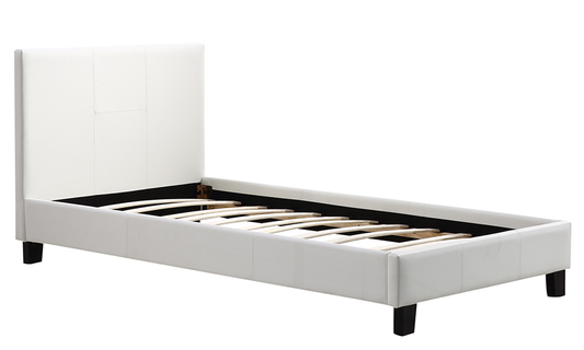 QUEEN SIZE- (713 WHITE)- LEATHER- BED FRAME- WITH SLATS