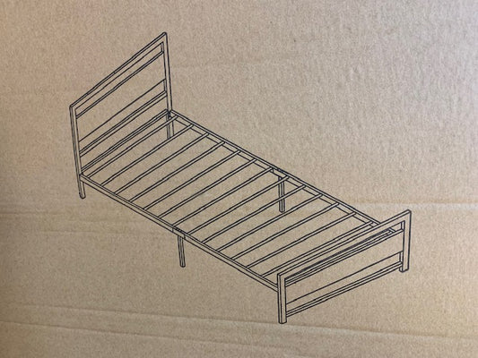 TWIN (SINGLE) SIZE- (2233 GREY)- METAL BED FRAME- WITH SLATTED PLATFORM