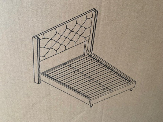 QUEEN SIZE- (UPTOWN GREY)- FABRIC- BED FRAME- WITH SLATS- OUT OF STOCK