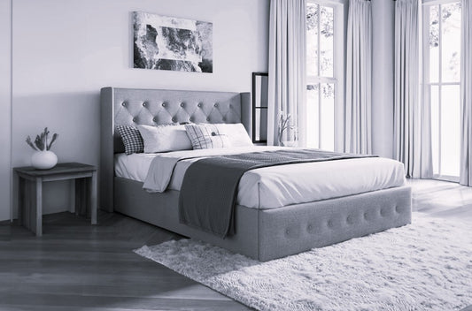 QUEEN SIZE- (2162 GREY)- FABRIC BED FRAME IN A BOX- WITH LIFT UP STORAGE