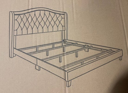 KING SIZE- (2173 GREY)- LINEN FABRIC- BED FRAME- (BOX SPRING REQUIRED)