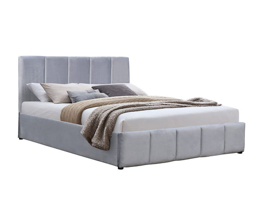 DOUBLE (FULL) SIZE- (FRANKFURT GREY)- VELVET FABRIC BED FRAME- WITH LIFT UP STORAGE