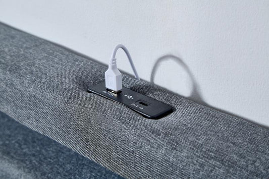 KING SIZE- (JESSY GREY)- FABRIC STORAGE BED FRAME- WITH 4 DRAWERS- WITH LIGHT- WITH USB- WITH SLATS
