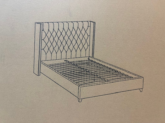 QUEEN SIZE- (5568 BEIGE)- BOUCLE FABRIC BED FRAME- WITH SLATS