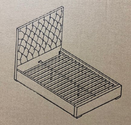 QUEEN SIZE- (ZANE GREY)- VELVET FABRIC- BUTTON TUFTED- BED FRAME- WITH SLATS