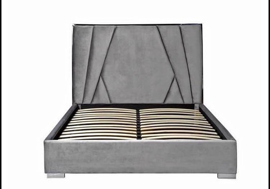 QUEEN SIZE- (5540 GREY)- VELVET FABRIC- BED FRAME- WITH SLATS