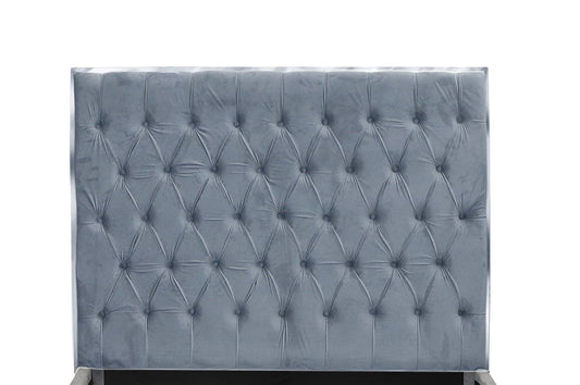 QUEEN SIZE- (LUCILLE GREY)- VELVET FABRIC - BUTTON FABRIC- BED FRAME- (BOX SPRING REQUIRED)