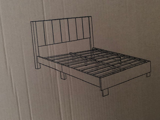 DOUBLE (FULL) SIZE- (2177 GREY FABRIC)- BED FRAME IN A BOX- WITH SLATS- OUT OF STOCK UNTIL SEPTEMBER 17, 2025
