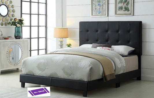 QUEEN SIZE- (2113 BLACK)- BUTTON TUFTED- LEATHER BED FRAME- (BOX SPRING REQUIRED)