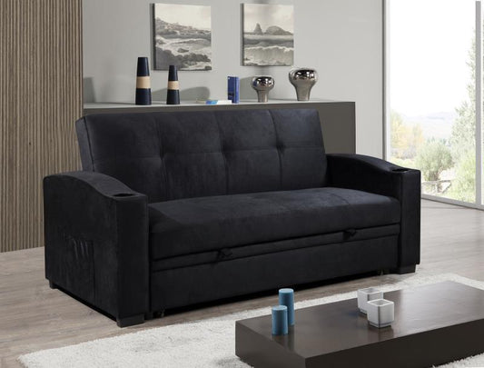 (ASHLEY BLACK)- SUEDE FABRIC PULL OUT SOFA BED- TEXT OR WHATSAPP 416 319 8851 FOR STOCK AVAILABILITY BEFORE PAYING