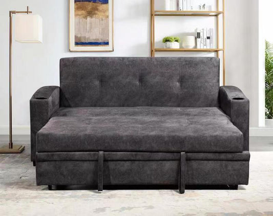 (1812 CHARCOAL)- 73" LONG- VELVET FABRIC PULL OUT SOFA BED