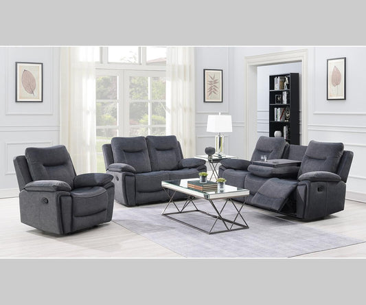(RIVALDO GREY SLC)- FABRIC MANUAL RECLINER 3 PC SOFA SET- TEXT OR WHATSAPP @ 416 319 8851 FOR STOCK AVAILABILITY BEFORE PAYING