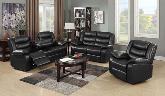 (RIVALDO BLACK SLC)- LEATHER MANUAL RECLINER 3 PC SOFA SET- TEXT OR WHATSAPP @ 416 319 8851 FOR STOCK AVAILABILITY BEFORE PAYING