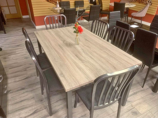 (3107- 250 GREY- 7)- 59" LONG- WOOD DINING TABLE- WITH 6 CHAIRS